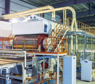 中國福馬自主研發的4英尺、6英尺、8英尺、9英尺連續平壓熱壓機系列產品,能夠滿足MDF、PB、OSB等板種、不同規格的產品需求。以滿足市場需求為導向,通過持續的技術創新,中國福馬品牌的連續平壓熱壓機產品形成了自身特點:1)柔性調節進入端;2)便于工藝調整的超長高壓段設置;3)等熱阻熱壓板介質通道設計;4)減少溫差的短接口熱壓板連接方式;5)雙向熱膨脹框架移動結構; 6)鋼帶彎曲變形最小化的結構設計;7)在線調整的鏈毯輥桿對中裝置;8)高效低能耗的廢煙氣分離處理系統。